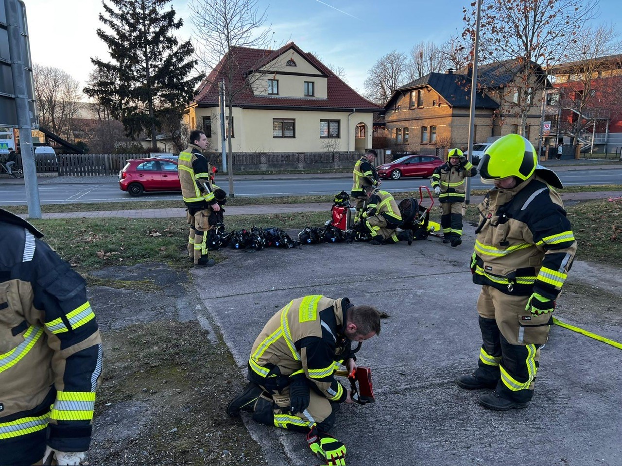 Beim Eintreffen der ersten Einsatzkräfte bestätigete sich die Meldung. Dichter Rauch kam aus dem Dach eines leerstehnden Gebäudes, Flammen waren bereits am Fenster des ersten Obergeschosses zu sehen. Sofort wurden Einsatzkräfte unter Atemschutz zur Menschensuche und Brandbekämpfung in das Gebäude geschickt. Zweiteres zeigte durch das engagierte Vorgehen der Trupps schnell Wirkung. Somit konnte nach kurzer Zeit bereits "Feuer unter Kontrolle" gemeldet werden. Zeitgleich wurde das Dach von außen geöffnet um mögliche Löscharbeiten von außen durchzuführen.