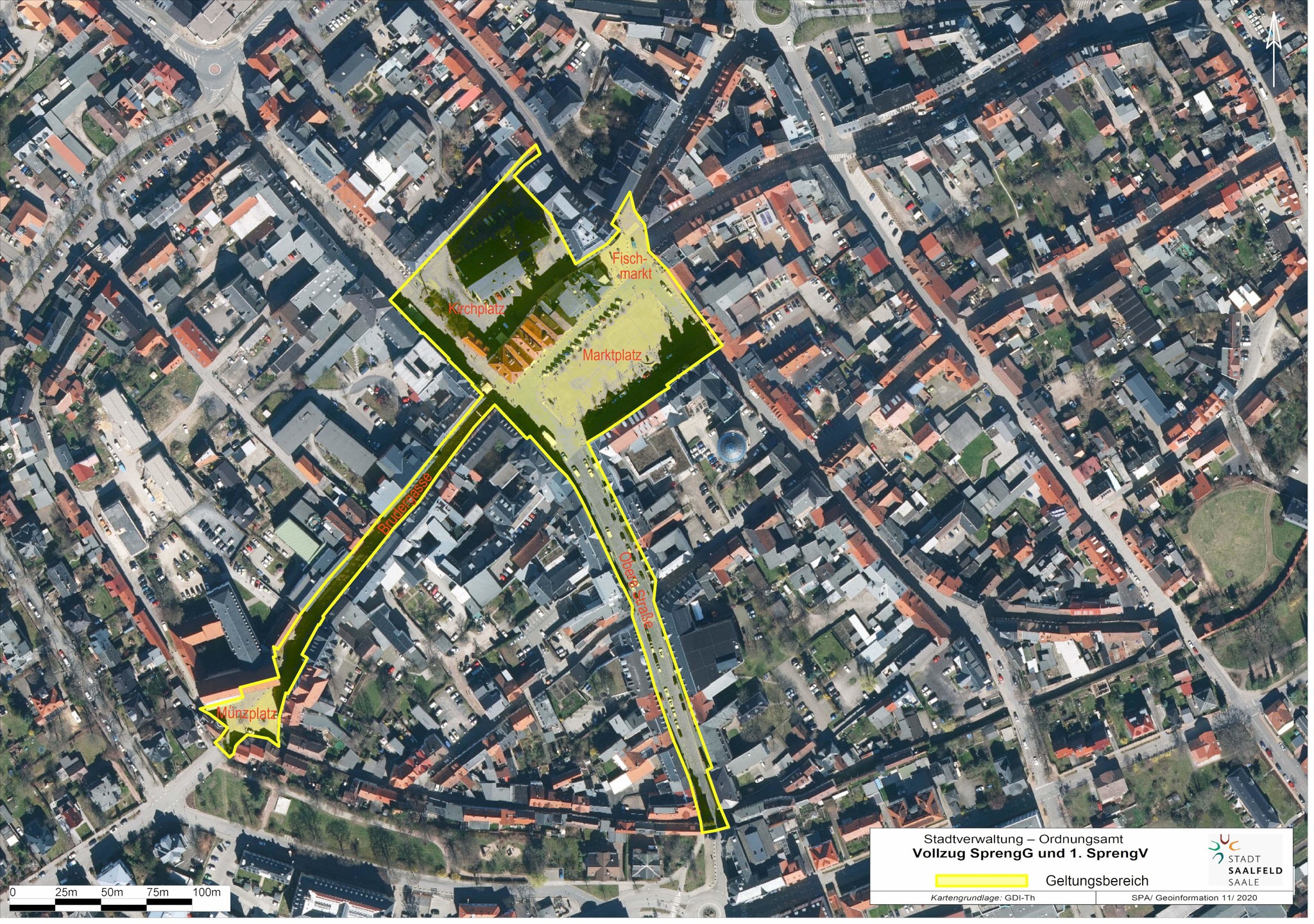 In der Stadt Saalfeld/Saale gilt zudem die Anordnung eines Abbrennverbotes für pyrotechnische Gegenstände der Kategorie F2 im historischen Zentrum der Stadt Saalfeld/Saale zum Jahreswechsel am 31.12. und 01.01. eines jeden Jahres bis zum Jahreswechsel 2027/2028.